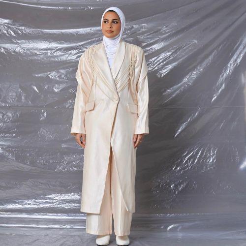 To maintain the premium quality and refined finish of your garment, kindly iron on low heat only. Steam is not recommended.